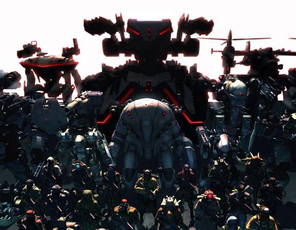 Ok one the Far left just off screen is a New VS i have no idea what this is, Next to it is the GTF-11, Just in front of that is the New Exo Skeleton Mech Which has Been Nicknamed "The Brawler" This is a Light type VS equided with a Gattling Gun and the New VS Shield, Next to that is the PTX - 40A (Hardballer or Super Mech), Next to that is the GTF - 13M (Snow Mobile), Just Behind that is the GTB -22 (Jumper Mech), Then to the far right is the New VS that is like a GTF - 11 but has two turrets that are opperated By Human Players while another drives the VS.